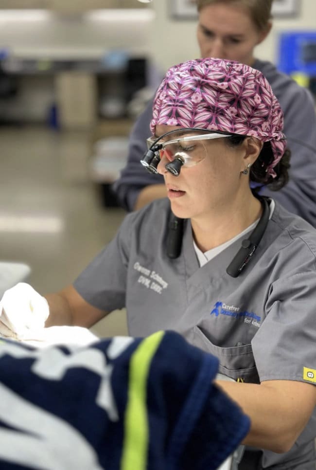 Dr. Schamberger worked at the Animal Dental Center and helped teach at the Animal Dental Training Center in Maryland before becoming a Diplomate of the American Veterinary Dental CollegeTM in 2009. She practiced as the veterinary dentist and oral surgeon at the Wisconsin Veterinary Referral Center for 13 years before relocating to the Southwest.