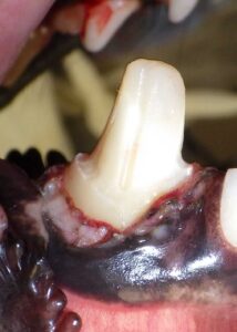Often caused by chewing bones or trauma, this exposes the nerve and allows infection to enter.