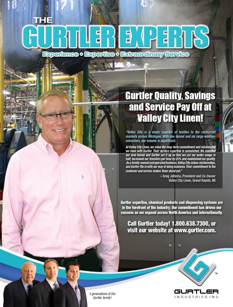 “Gurtler’s laundry chemical products, service and technology have increased our quality. Our customers rave about our textile’s brightness and overall appearance. Gurtler has helped us maintain fabric integrity while keeping our rewash rates at all-time lows,” said Reppert. “The result of our partnership with Gurtler is that our customers continue ...